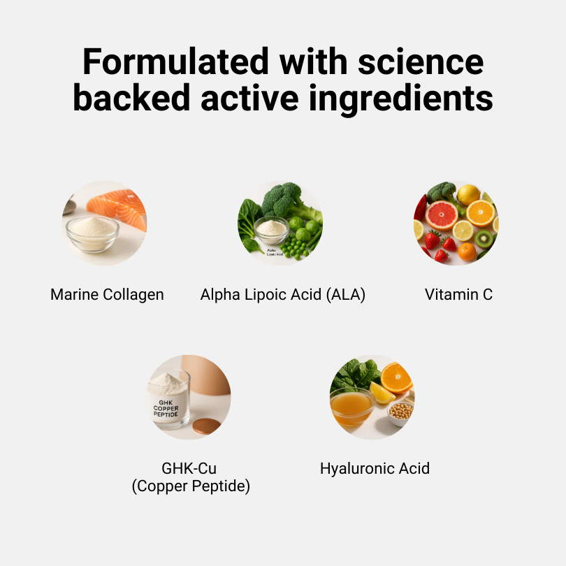 We don’t believe beauty should come from overhyped creams or filters. If your skin’s dull, dry, or losing firmness, the issue starts deeper. Real results come from within.