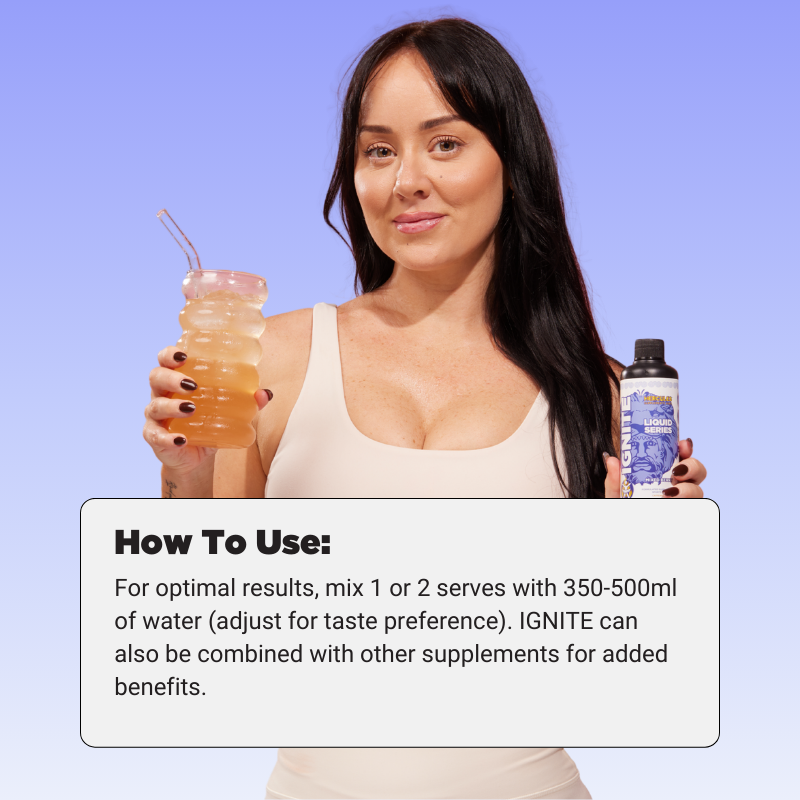 For best results, take Ignite in the morning, before cardio, or during a fasted window. Its formula is designed to work in sync with your body’s natural rhythms.