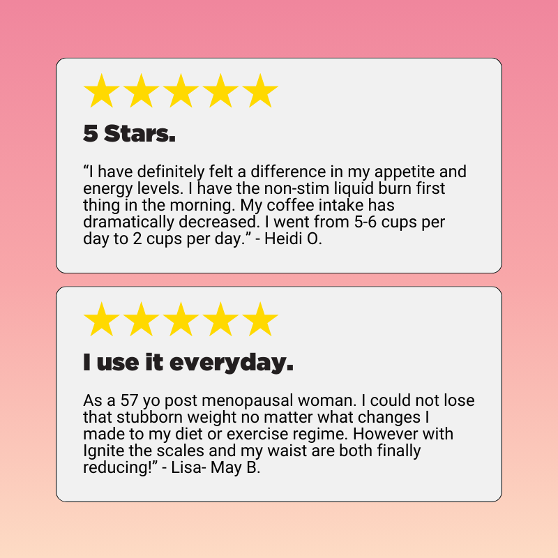 Ignite is built on more than hype. It’s built on science, proof, and real results. Every ingredient has been carefully selected based on scientific research and real-world performance data. We analysed thousands of verified reviews to see what people actually experienced: